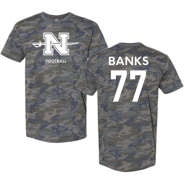 Nicholls State University Football Vintage Camo Tee - #77 Cam Banks
