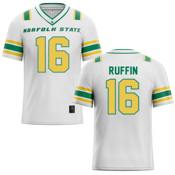 Norfolk State University White Football Jersey - #16 Christian Ruffin