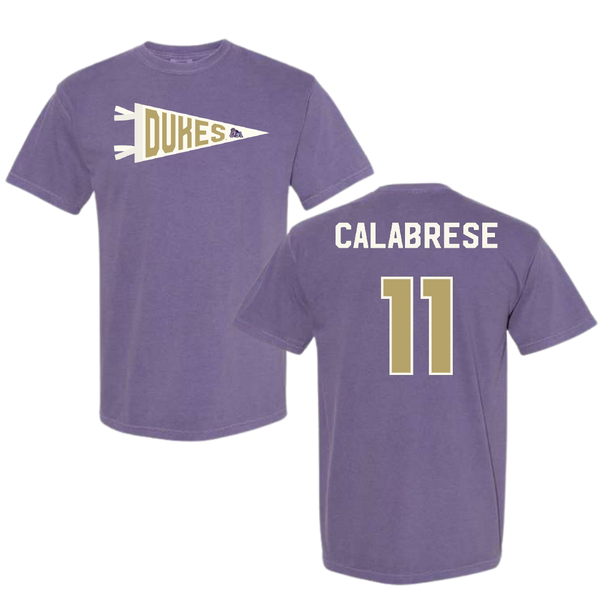 James Madison University Baseball Purple Pennant Comfort Colors Tee - #11 Coleman Calabrese