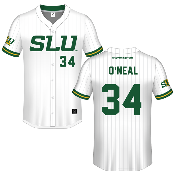 Southeastern Louisiana University White Pinstripe Button-Down Jersey - #34 Conner O’Neal