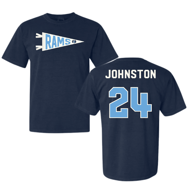 University of Rhode Island Baseball Navy Pennant Comfort Colors Tee - #24 Connor Johnston