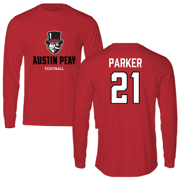 Austin Peay State University Football Red General Long Sleeve - #21 Denver Parker