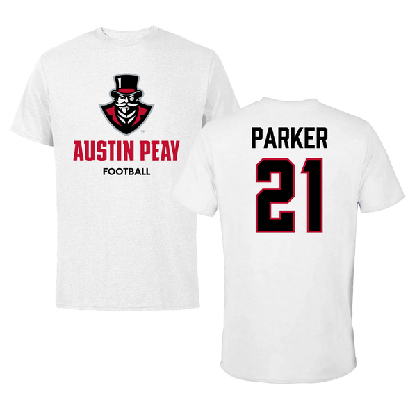 Austin Peay State University Football White Tee - #21 Denver Parker