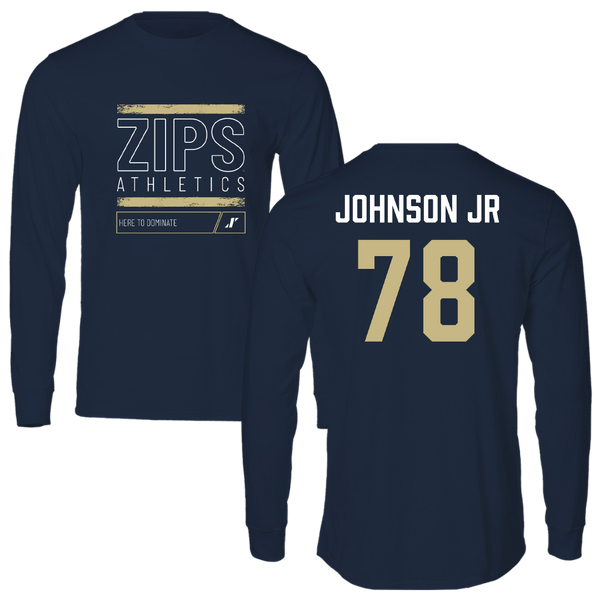 University of Akron Football Navy Dominate Long Sleeve - #78 DJ Johnson Jr