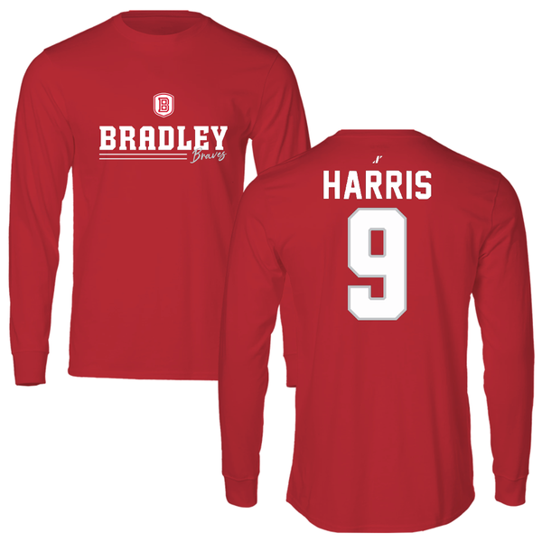 Bradley University Baseball Red General Long Sleeve - #9 Easton Harris