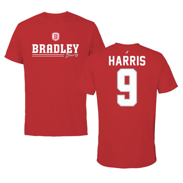 Bradley University Baseball Red General Tee - #9 Easton Harris