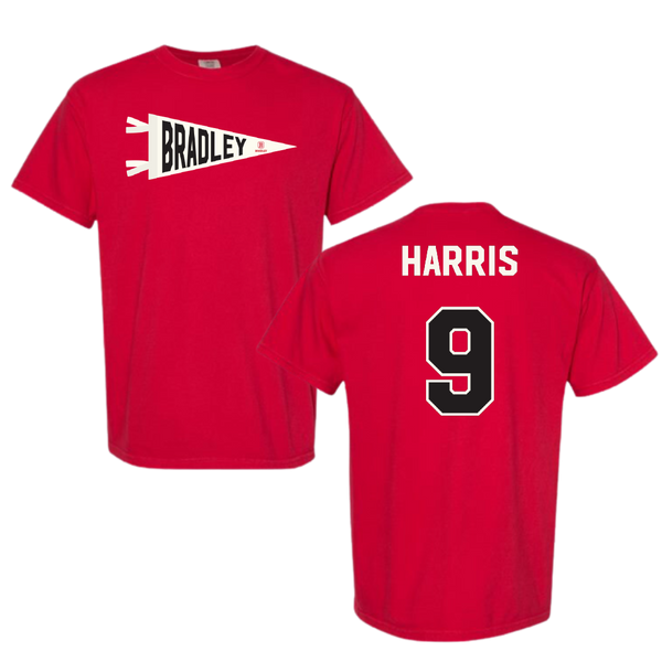Bradley University Baseball Red Pennant Comfort Colors Tee - #9 Easton Harris
