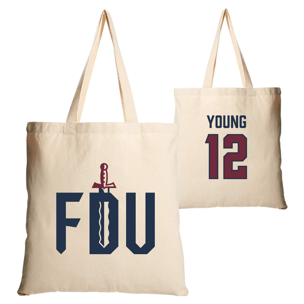 Fairleigh Dickinson University-Metropolitan Campus Volleyball Tan Canvas Tote Bag - #12 Ethan Young
