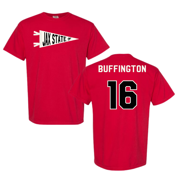Jacksonville State University Softball Red Pennant Comfort Colors Tee - #16 Hannah Buffington