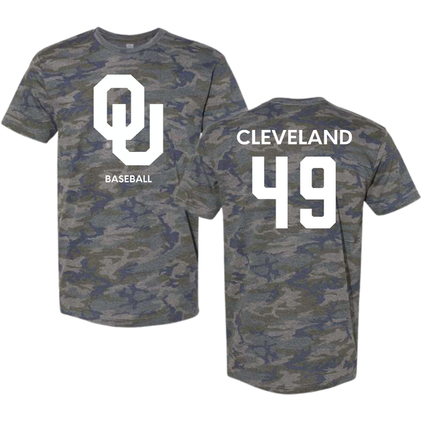 University of Oklahoma Baseball Vintage Camo Tee - #49 Jackson Cleveland