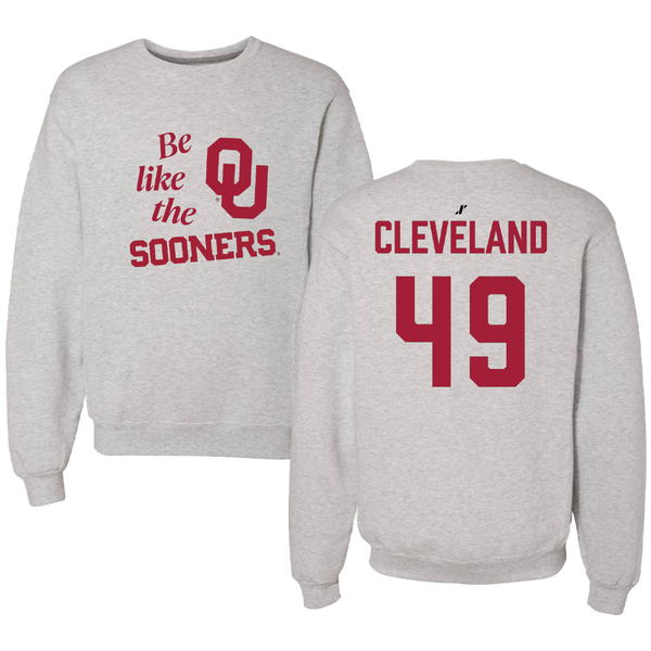 University of Oklahoma Baseball Light Gray Be Like Us Crewneck - #49 Jackson Cleveland