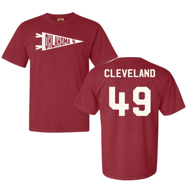University of Oklahoma Baseball Crimson Pennant Comfort Colors Tee - #49 Jackson Cleveland
