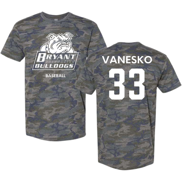 Bryant University Baseball Vintage Camo Tee - #33 Jackson Vanesko