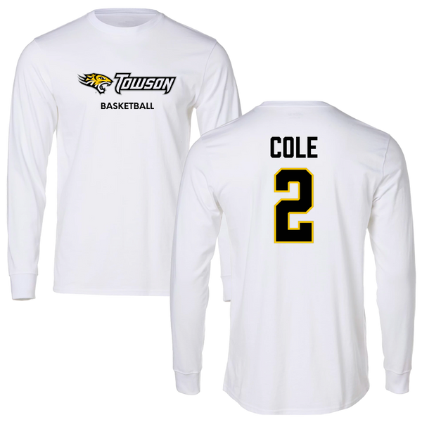 Towson University Basketball (M) White Long Sleeve - #2 Jaiden Cole