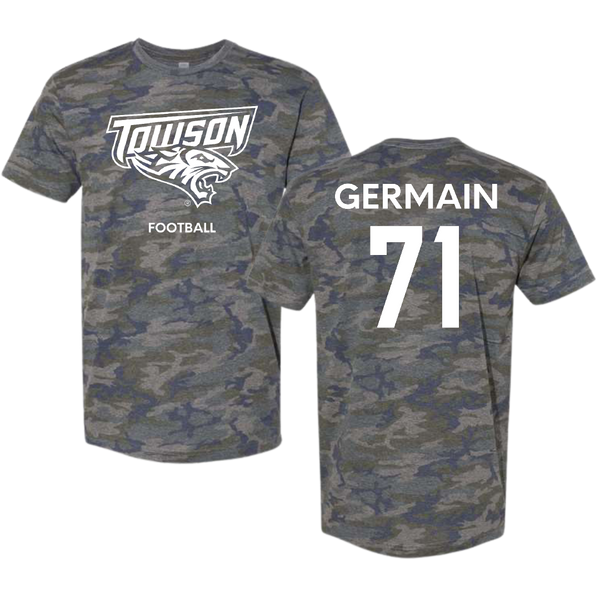Towson University Football Vintage Camo Tee - #71 Jean Germain