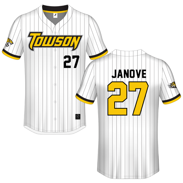 Towson University White Pinstripe Button-Down Jersey - #27 Josh Janove
