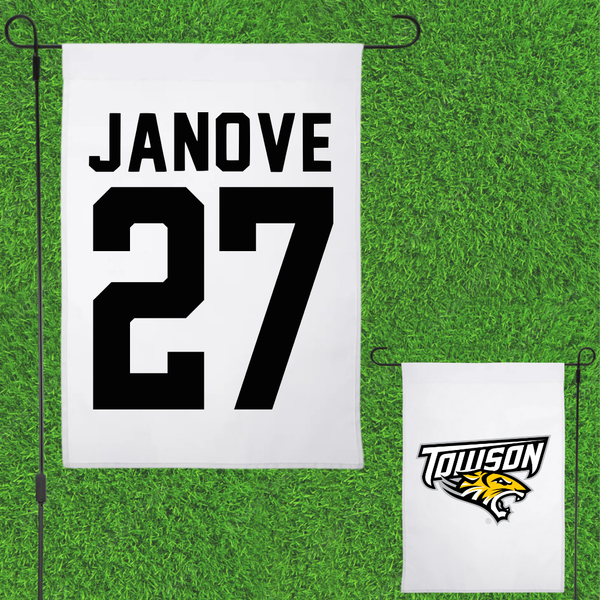 Towson University Baseball White Garden Flag - #27 Josh Janove
