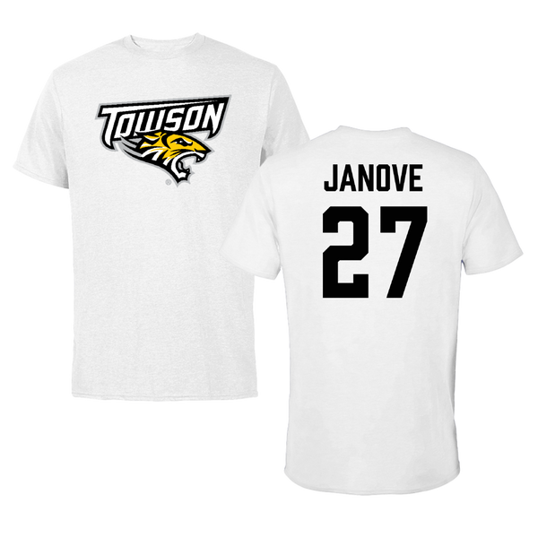 Towson University Baseball White Performance Tee - #27 Josh Janove