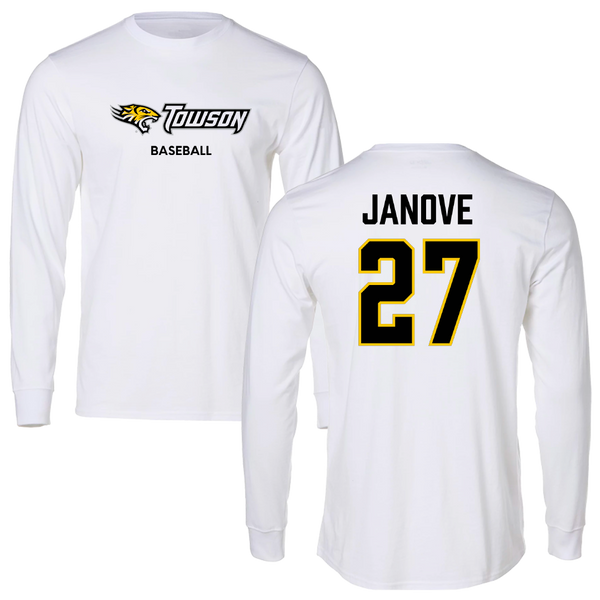 Towson University Baseball White Long Sleeve - #27 Josh Janove