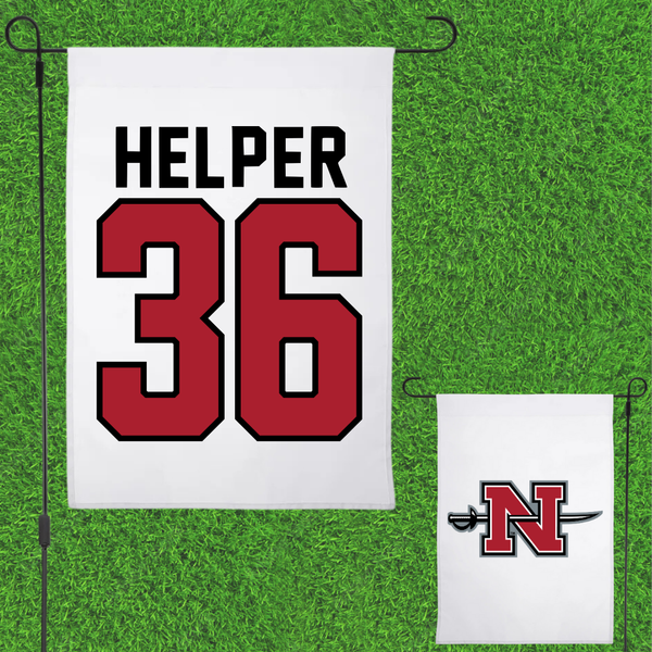 Nicholls State University Football White Garden Flag - #36 Justin Helper