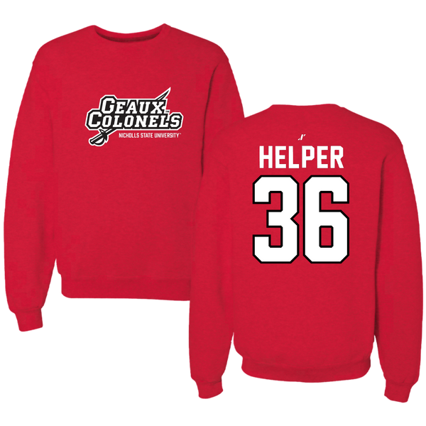 Nicholls State University Football Red Touchdown Crewneck - #36 Justin Helper