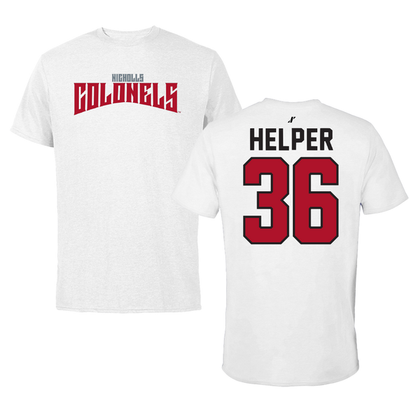Nicholls State University Football White Classic Tee - #36 Justin Helper