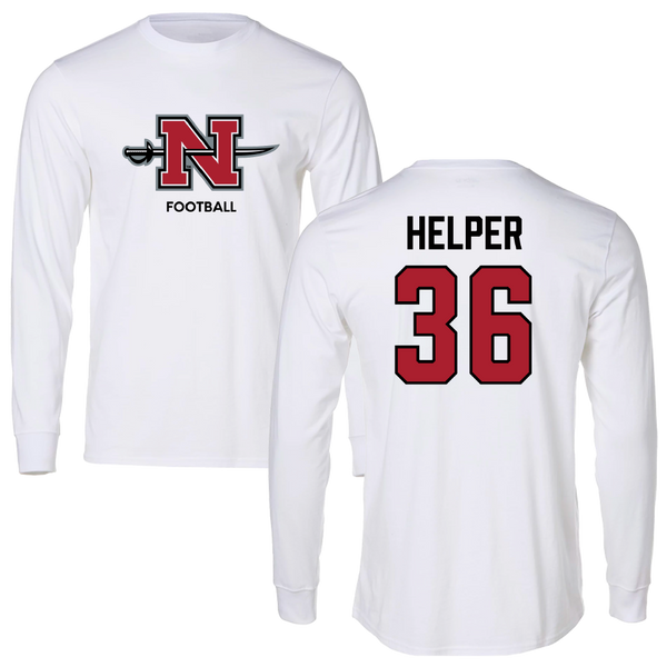 Nicholls State University Football White Classic Long Sleeve - #36 Justin Helper