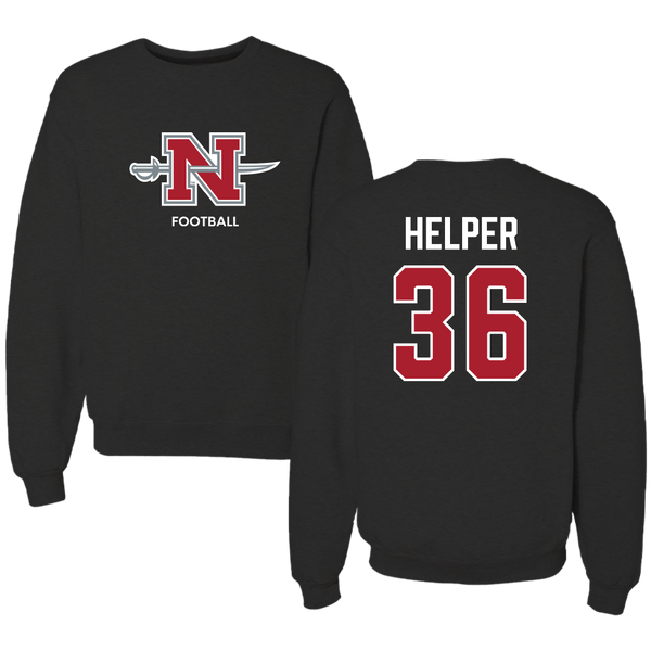 Nicholls State University Football Black Mascot Crewneck - #36 Justin Helper