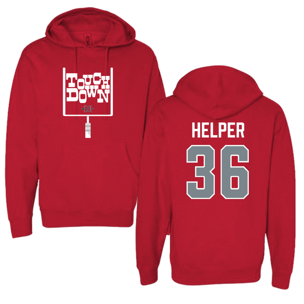 Nicholls State University Football Red Touchdown Hoodie - #36 Justin Helper