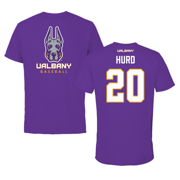 University at Albany Baseball Purple Tee - #20 Justin Hurd
