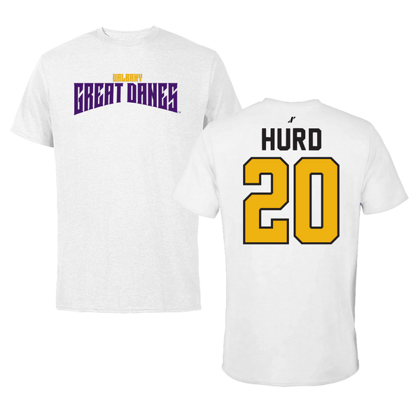 University at Albany Baseball White Mascot Tee - #20 Justin Hurd