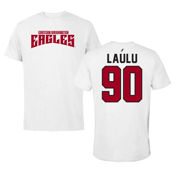 Eastern Washington University Football White Classic Tee - #90 Justis Laulu