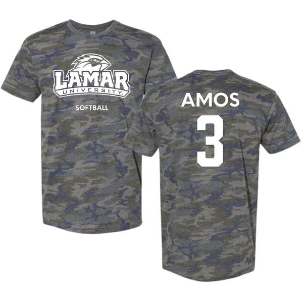 Lamar University Softball Vintage Camo Tee - #3 Kalie Amos