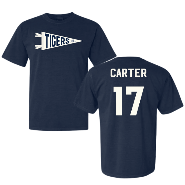 Jackson State University Volleyball Navy Pennant Comfort Colors Tee - #17 Kymorah Carter