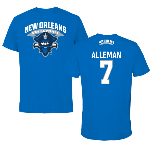 University of New Orleans Volleyball Blue Mascot Tee - #7 Lani Alleman