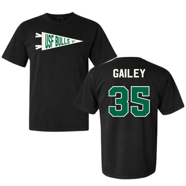 University of South Florida Baseball Black Pennant Comfort Colors Tee - #35 Lawson Gailey