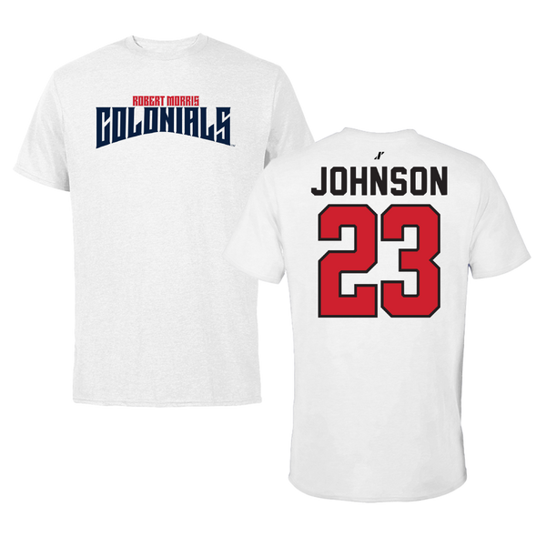 Robert Morris University Ice Hockey White Classic Performance Tee - #23 Luke Johnson