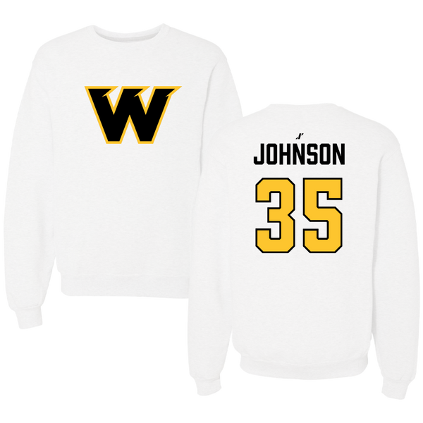Wayne State College (Nebraska) Football White Crewneck - #35 Luke Johnson