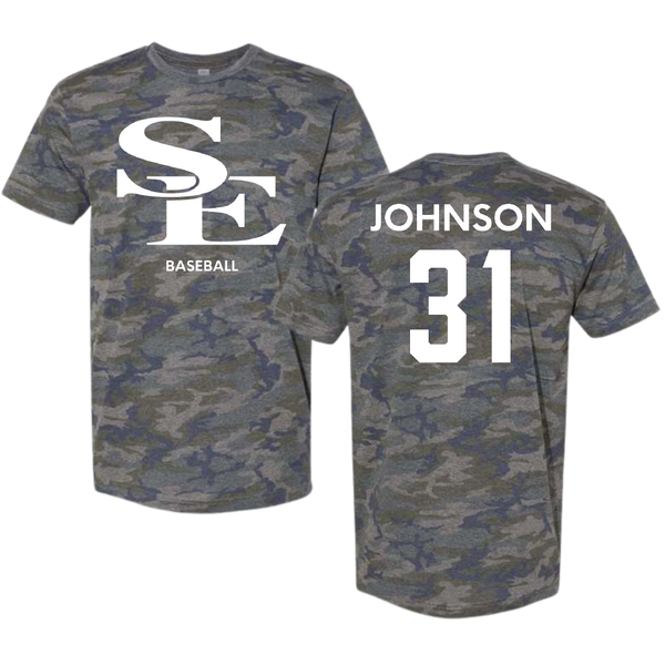 Southeastern Oklahoma State University Baseball Vintage Camo Tee - #31 Luke Johnson