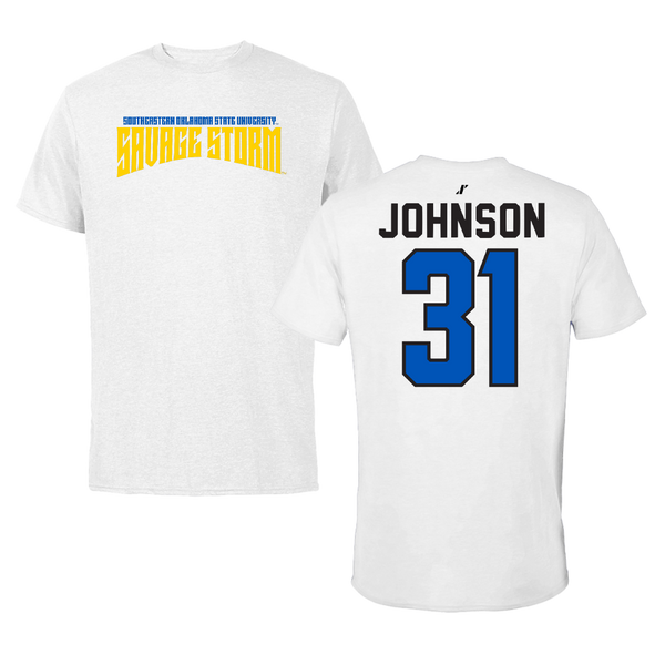 Southeastern Oklahoma State University Baseball White Classic Tee - #31 Luke Johnson