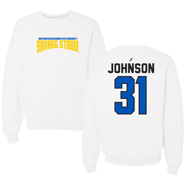 Southeastern Oklahoma State University Baseball White Classic Crewneck - #31 Luke Johnson