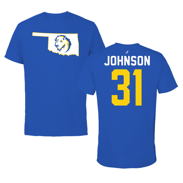 Southeastern Oklahoma State University Baseball Blue State Tee - #31 Luke Johnson