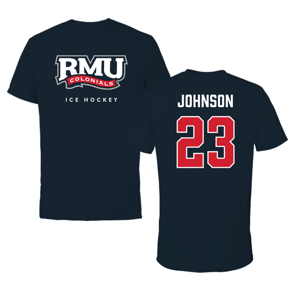 Robert Morris University Ice Hockey Navy Performance Tee - #23 Luke Johnson