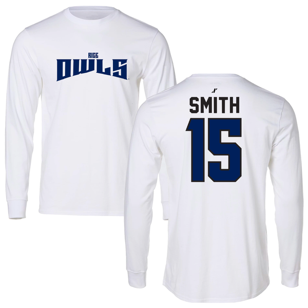 Rice University Baseball White Classic Long Sleeve - #15 Luke Smith