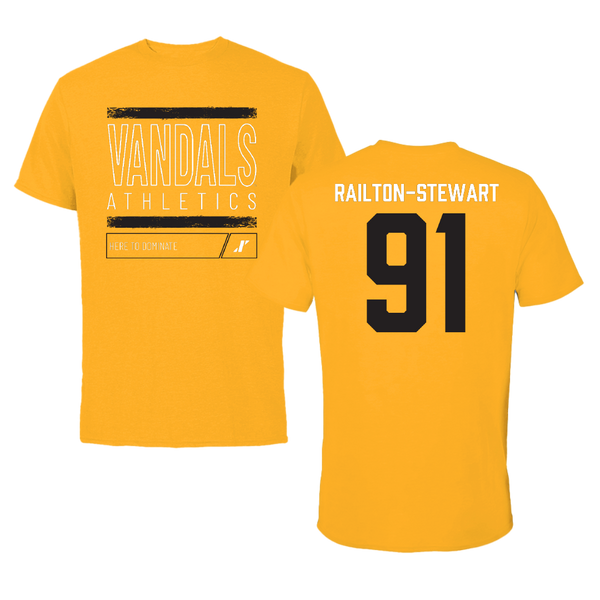 University of Idaho Football Gold Dominate Tee - #91 Malakai Railton-Stewart