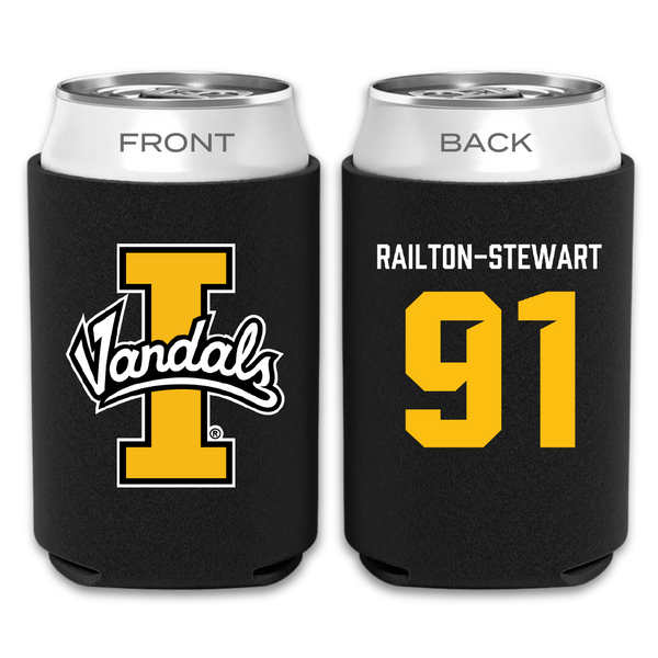 University of Idaho Football Black Can Cooler - #91 Malakai Railton-Stewart