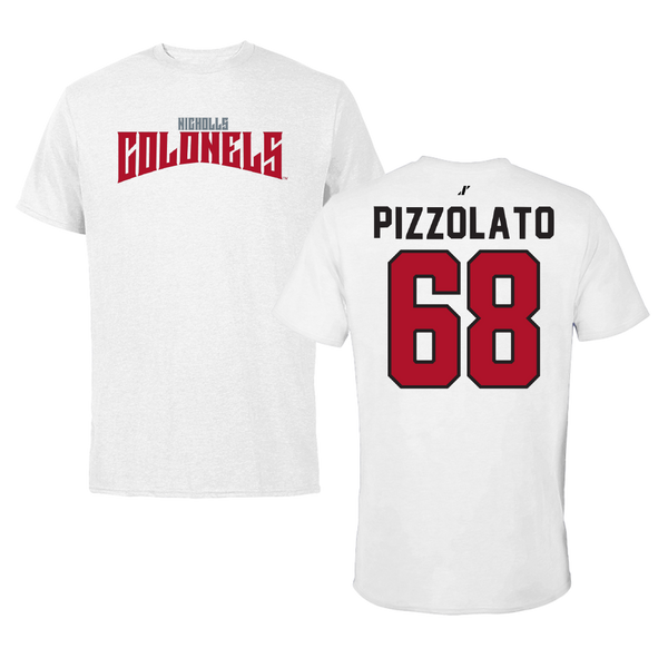 Nicholls State University Football White Classic Tee - #68 Robbie Pizzolato