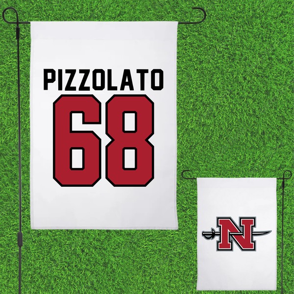 Nicholls State University Football White Garden Flag - #68 Robbie Pizzolato