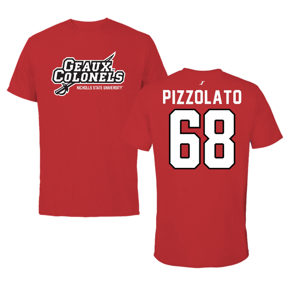 Nicholls State University Football Red General Tee - #68 Robbie Pizzolato