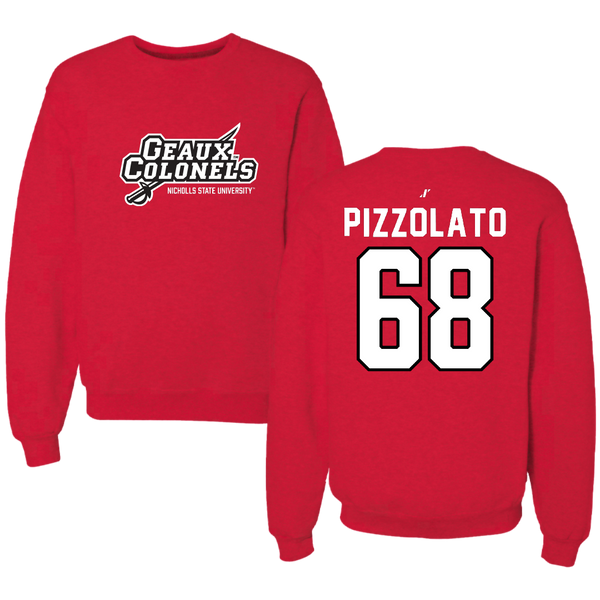 Nicholls State University Football Red General Crewneck - #68 Robbie Pizzolato